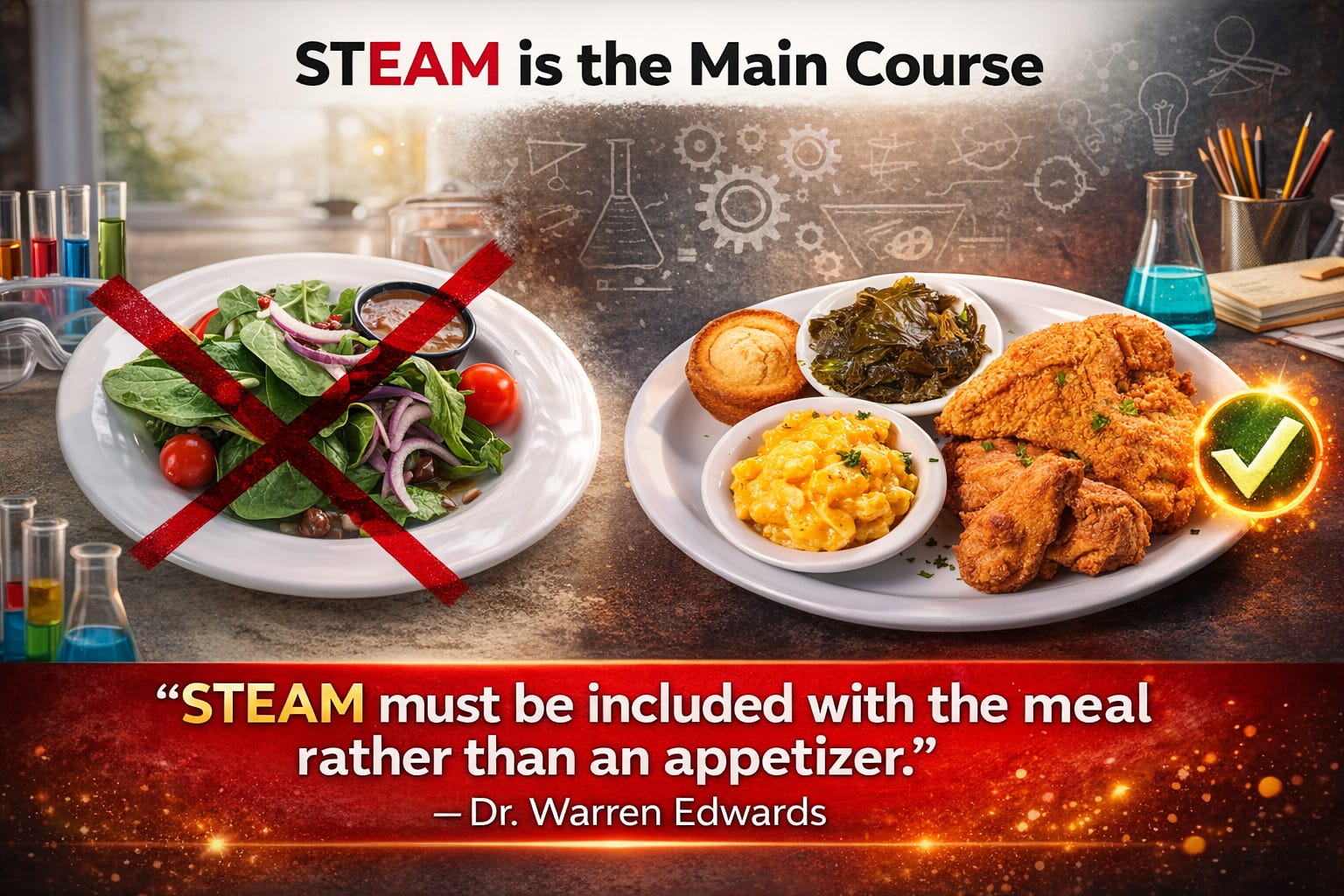 Where does STEM actually live right now? Is it showing up as a side salad — planned, integrated, present for every student, every day? Or is it an appetizer — exciting, occasional, and disconnected from the main course?